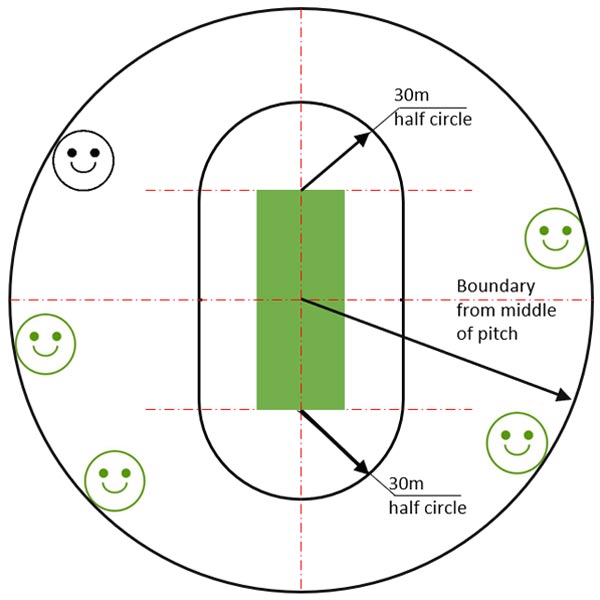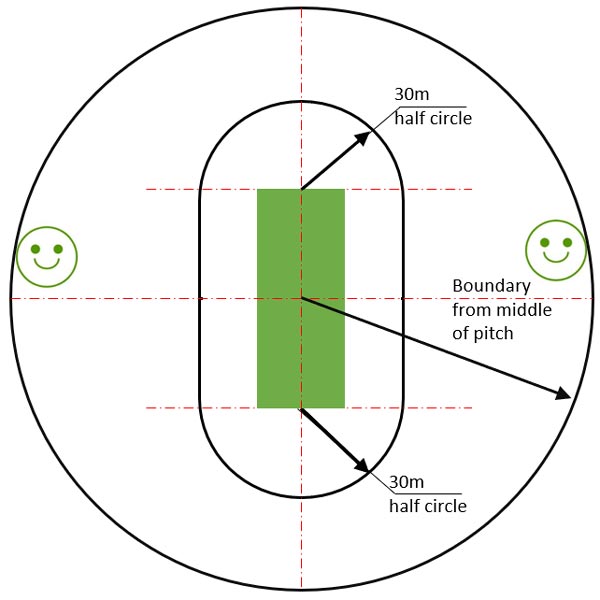 1. Boundary is measured from the centre of the pitch (See rules for length)